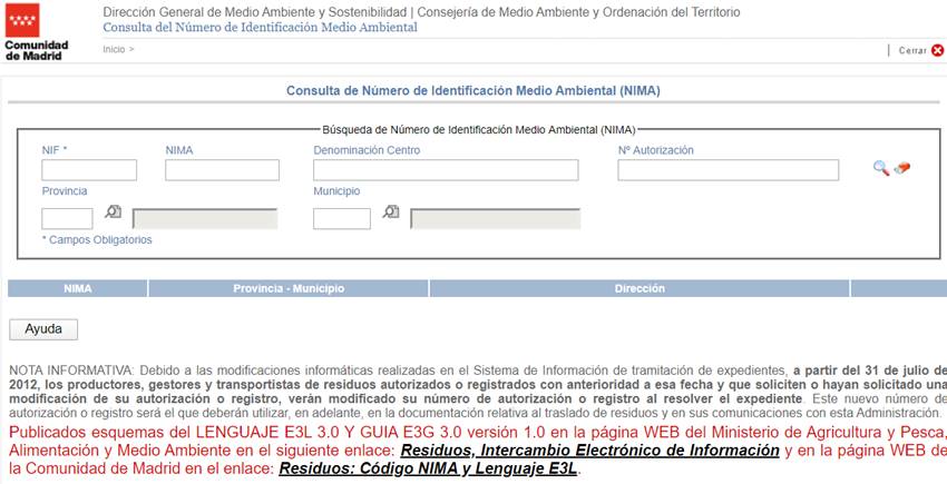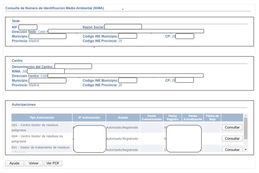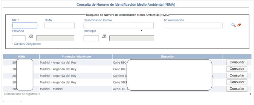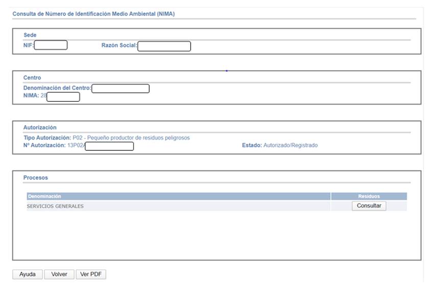 · NIMA: Número de Identificación Medio Ambiental asignado al centro de la empresa consultada.